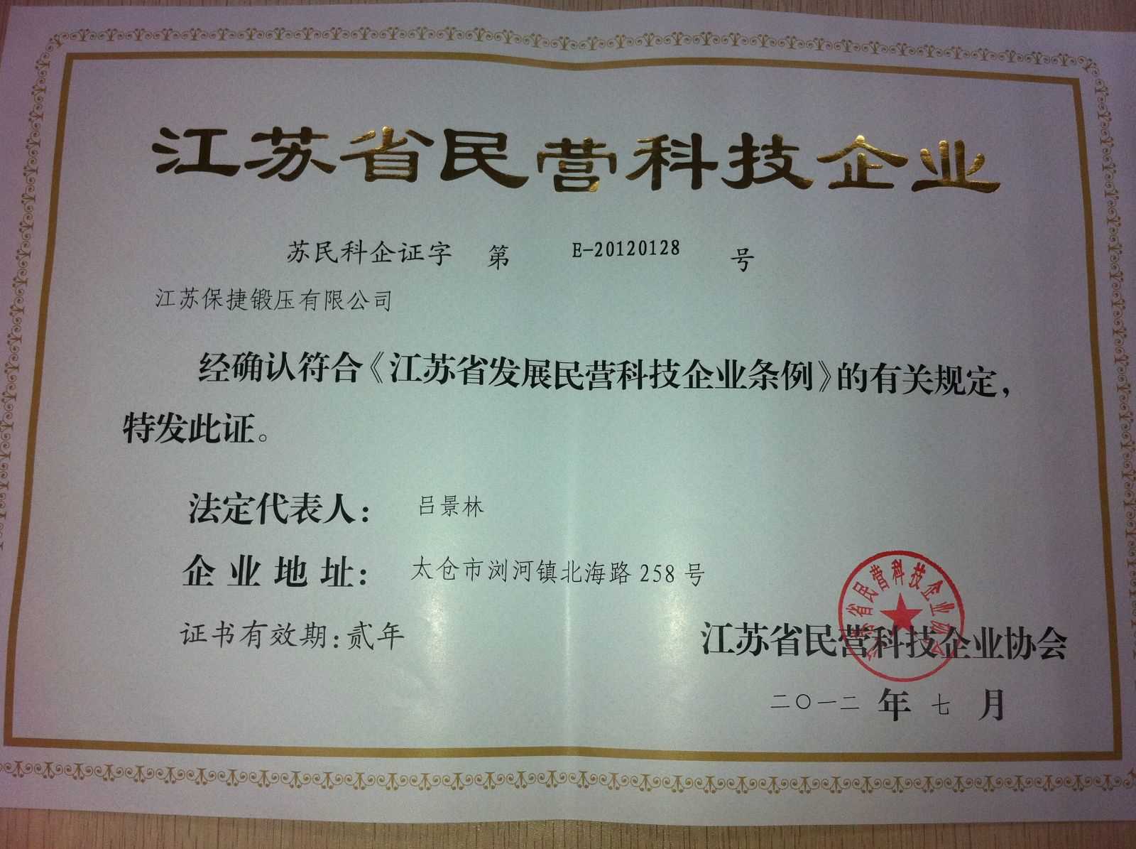 江蘇省民營(yíng)科技企業(yè)證書(shū)