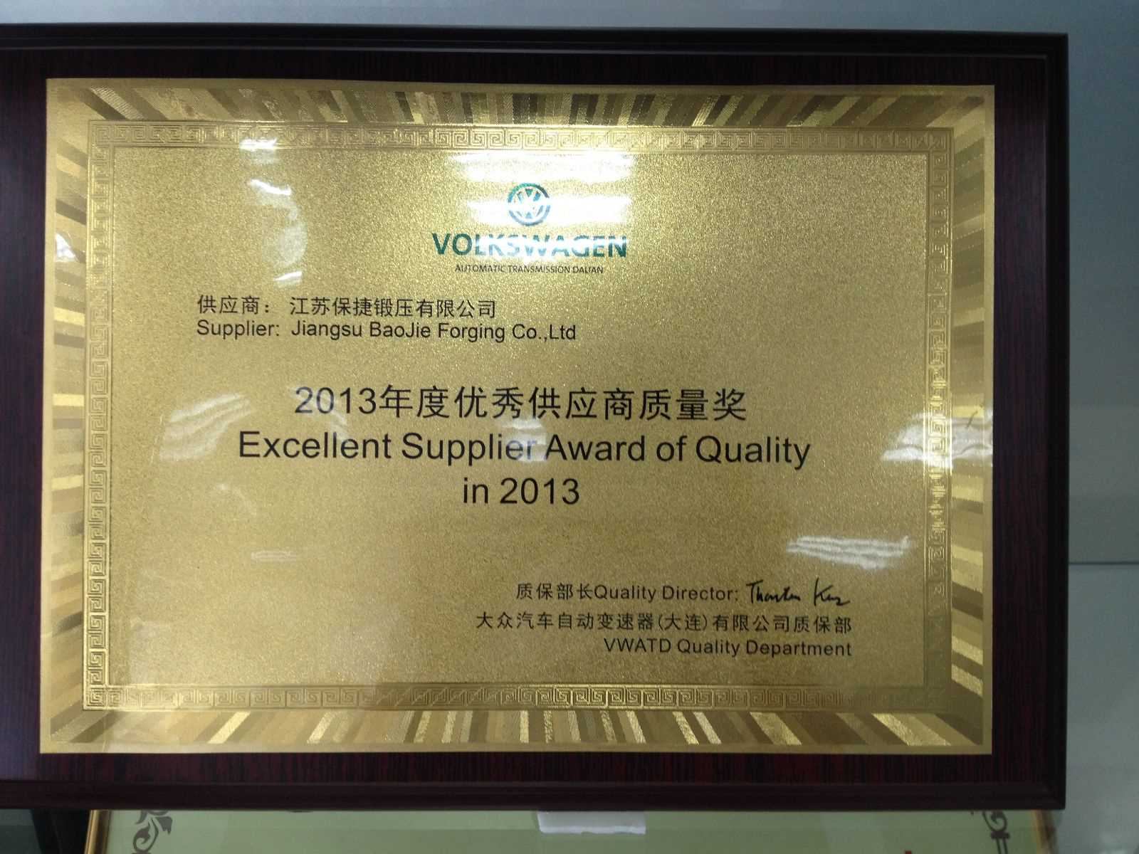 大眾A級(jí)供應(yīng)商質(zhì)量獎(jiǎng)